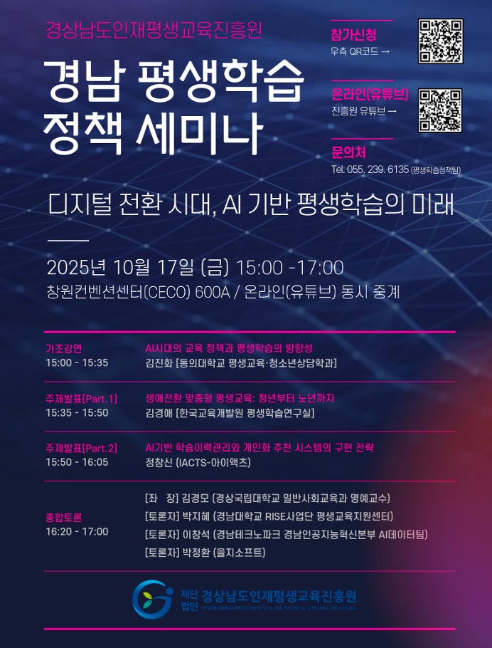 Copyrights by 2023 GYEONGSANGNAMDO INSTITUTE FOR TALENT & LIFELONG EDUCATION. All Rights Reserved