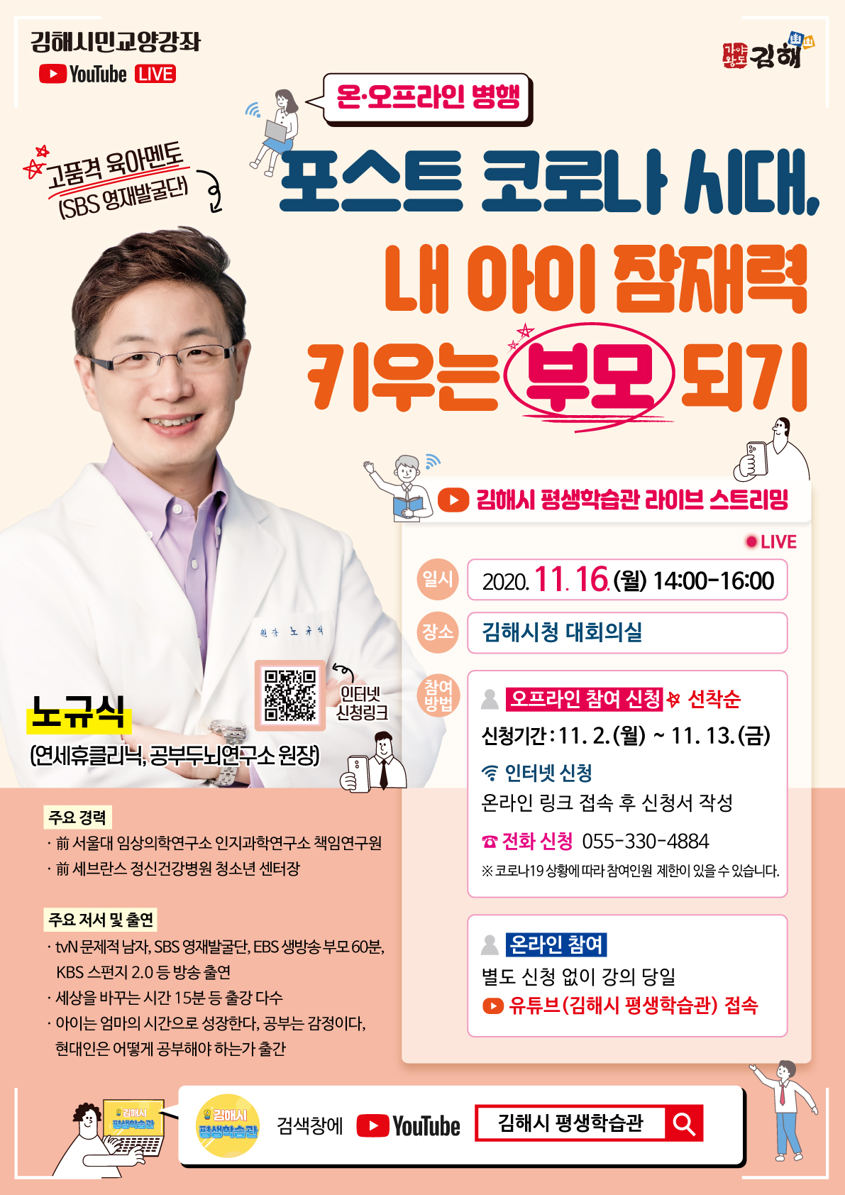 2. 온라인 참여 : 별도 신청 없이 강의 당일 유튜브(김해시 평생학습관) 접속