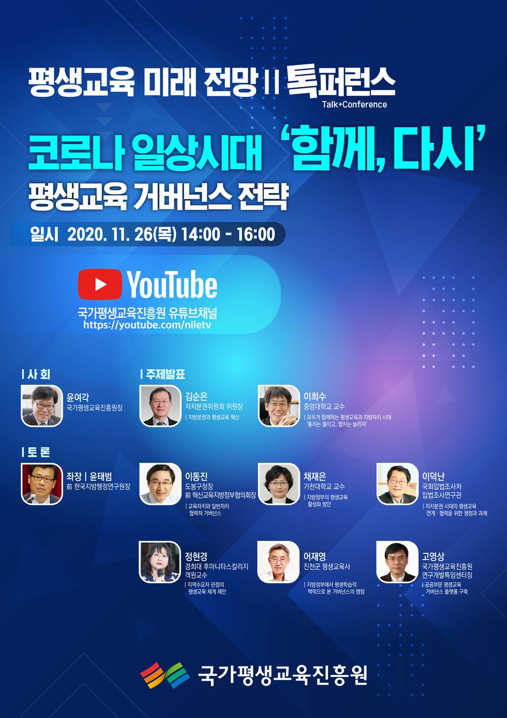 ▷ 진행방법 : 국가평생교육진흥원 유튜브 생중계(www.youtube.com/niletv)