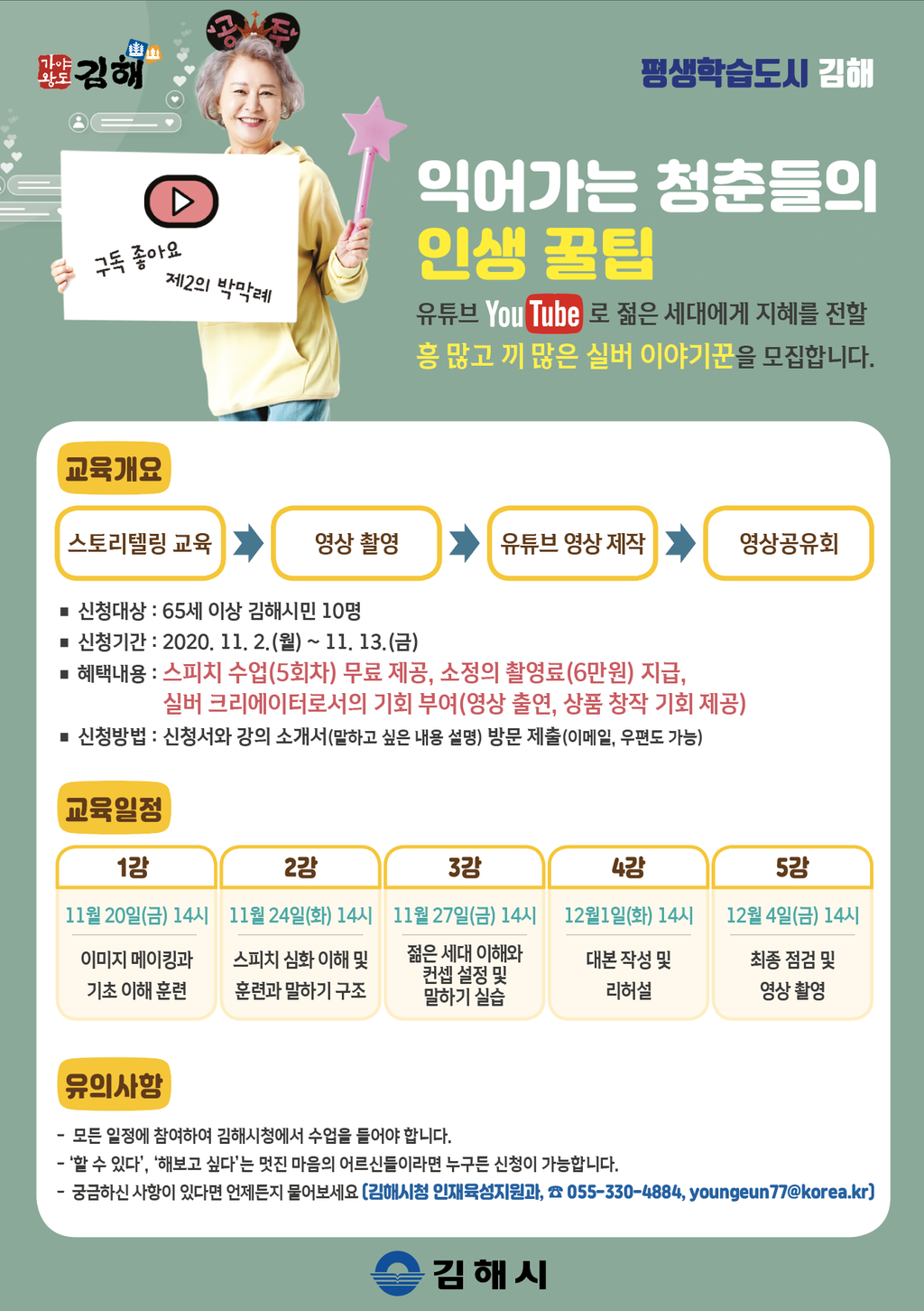 - 문의: 인재육성지원과 평생학습팀(055-330-4884, youngeun77@korea.kr