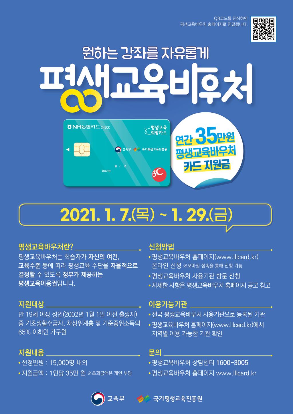 교육부는 저소득층을 대상으로 평생교육 참여기회를 지원하기 위하여 평생교육 바우처 지원사업을 추진하고 있습니다.