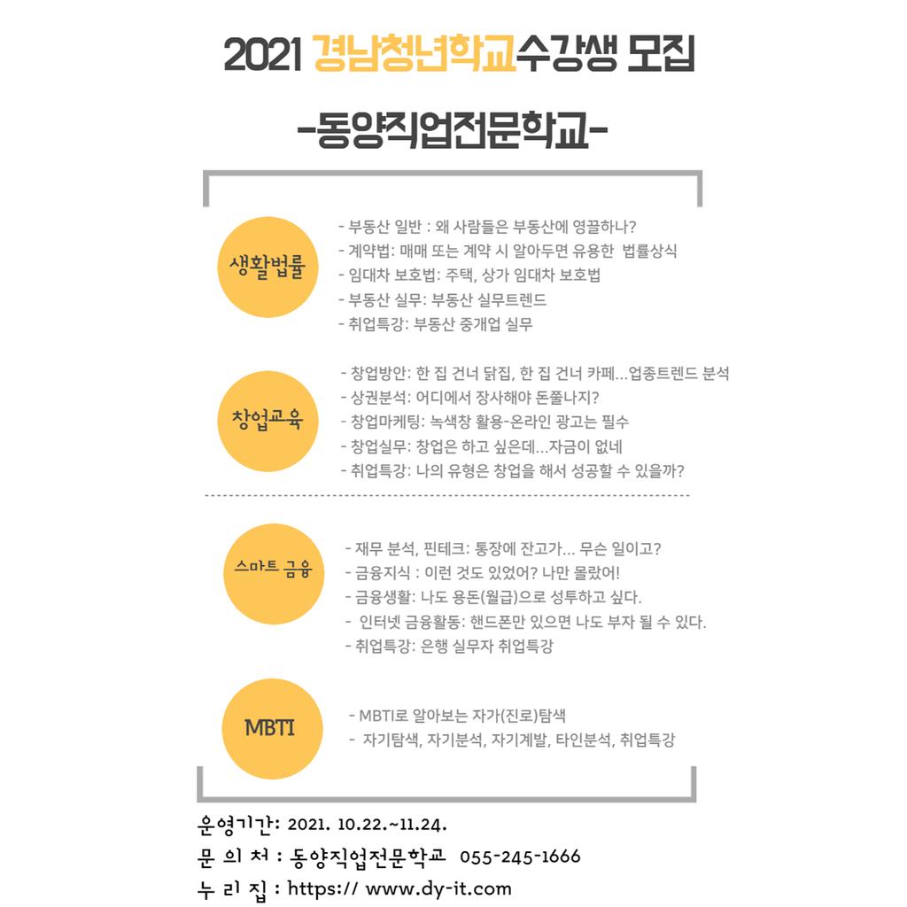 동양직업전문학교 (055-245-1666) | 2021.10.22.~11.24. | http://www.dy-it.com | |
