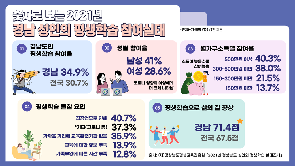 숫자로 보는 2021년 경남 성인의 평생학습 참여실태 (요약본)