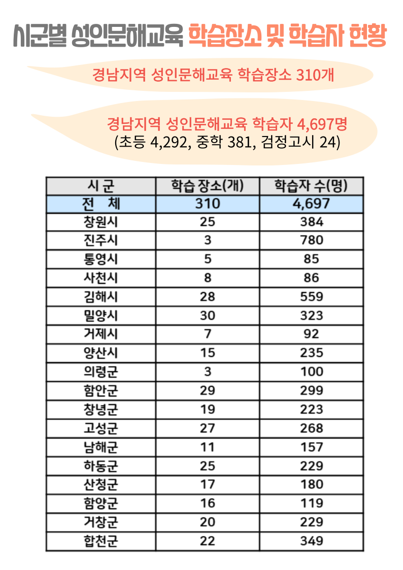 2022년 경상남도 성인문해교육 기본현황